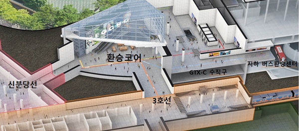 이에 대광위는 서초구 요청으로 유관 기관 간 협의체를 구성하고 양재역 환승코어 추진 방안을 지속적으로 논의해 왔다. 양재역 환승코어는 GTX-C, 3호선, 신분당선 간 이동 거리를 줄이기 위해 지하에서 한번에 연결하는 환승 광장으로, 이번 용역을 통해 설계를 진행해 GTX-C 개통 시점에 맞춰 준공될 예정이다.