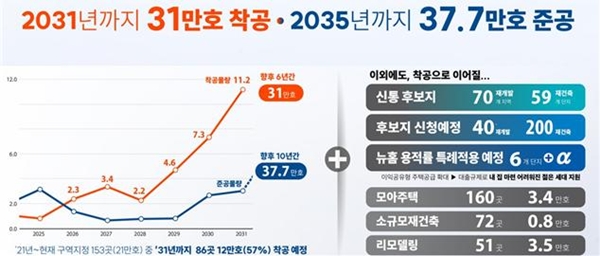시는 신통기획 2.0의 본격 가동을 통해 2031년까지 총 31만 가구 착공, 2035년까지 37만7000가구 준공을 목표로 세웠다. 현재 정비구역 지정을 앞둔 사업장과 모아주택 등 소규모정비사업, 리모델링 물량까지 더하면 2031년까지 최대 39만 가구 이상 공급이 가능한 물량이다.