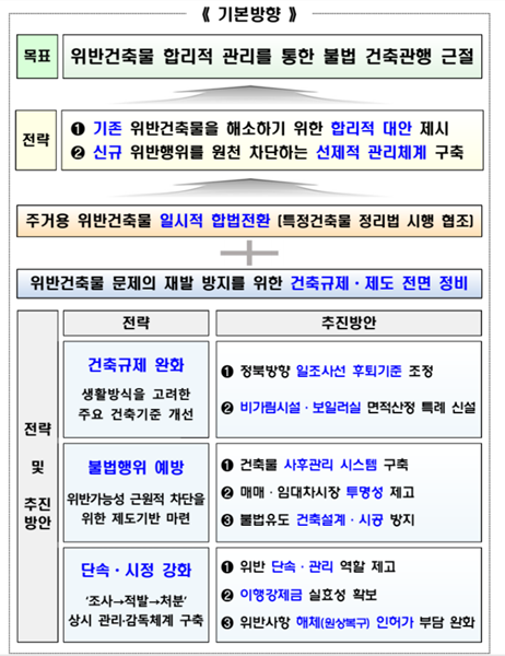 이와 함께 일시적 양성화 사례가 반복되지 않도록 건축 규제와 관련 제도를 전면적으로 개선하고, 불법 행위를 근원적으로 차단할 수 있는 제도적 기반을 구축한다.