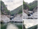 쌍용폭포는 청룡과 황룡이 살던 곳이라 하여 이름 붙여 졌는데 실제 두 줄기의 물이 갈라져 흘러 내린다.