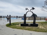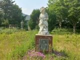 폐교 앞, 굳건히 서 있는 이순신 장군,