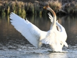 천연기념물 제201-1호이자 멸종위기 2급인 큰고니가 자태를 뽐내며 한가롭게 먹잇감을 찾고 있다.