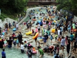 기록적인 폭염이 지속되고 있는 가운데 영암군 월출산 기찬랜드에 피서객들이 인산인해를 이루고 있다.