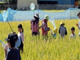 지난달 30일 전남 강진군 작천면 들판에 마련된 ‘제3회 강진 작천 황금들 메뚜기축제’ 장을 찾은 가족들이 누렇게 익은 벼이삭을 옮겨 다니는 메뚜기를 잡아보는 즐거운 체험을 하고 있다.