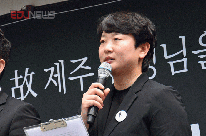 14일 오후 2시 한국교원단체총연합회(한국교총, 회장 강주호), 전국교직원노동조합(전교조, 위원장 박영환), 교사노동조합연맹(교사노조, 위원장 이보미) 등이 청와대 길에서 기자회견을 열고 ‘슬픔을 넘어 분노로, 분노를 모아 행동으로’ 나선 것.