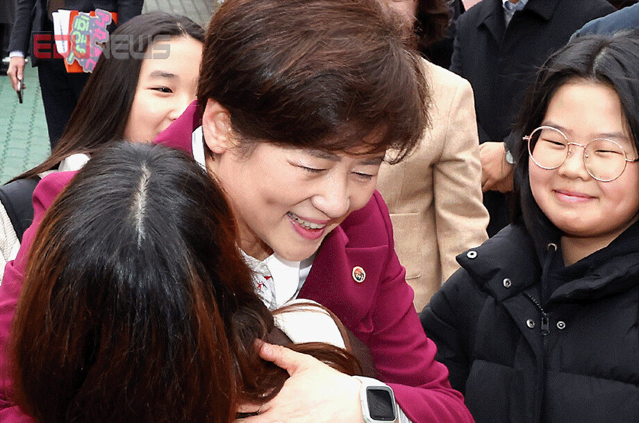 [에듀뉴스] 강은희 대구광역시교육감은 새학년 첫날인 3일 아침, 2026학년도 1학기 개학을 맞아 덕인초등학교(교장 김은선) 전교생을 대상으로 ‘새학년, 새출발! 도전과 응원 미션 활동’을 위해 따뜻한 엄마표로 변신해 참여해 학생들과 함께 새학년, 새출발! 배움을 응원하고 격려했다.