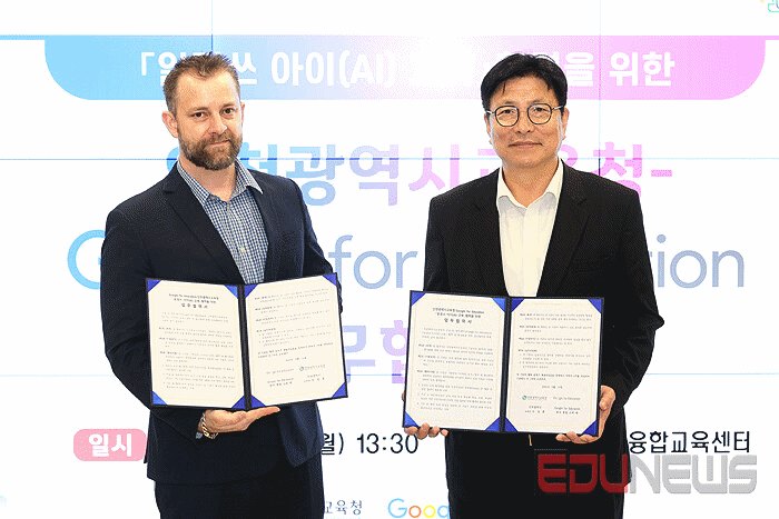 [에듀뉴스] 인천광역시교육청(교육감 도성훈)은 15일 Google for Education과 ‘읽걷쓰 AI교육’활성화를 위한 업무협력식을 가졌다.