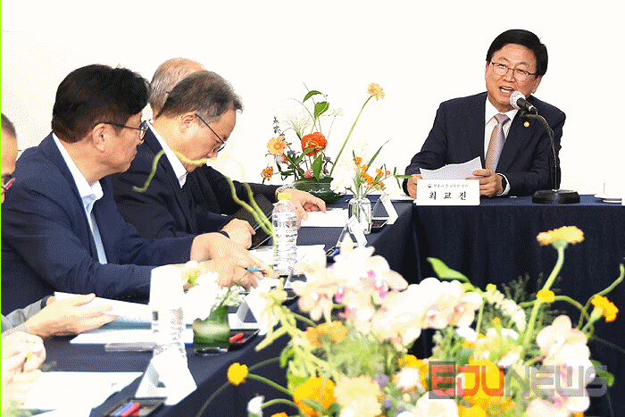 [에듀뉴스] 새로 취임한 최교진 부총리 겸 교육부 장관은 16일 오후 2시 청주 앤포드호텔에서 ‘고교학점제 시도교육감 간담회’를 열고 취임 후 전국 시·도교육감들과 상견례를 가졌다.