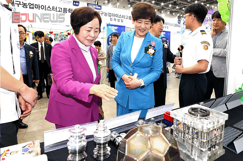 [에듀뉴스] 강은희 대구광역시교육감이 9일부터 10일까지 2일간 대구 엑스코 동관 5홀에서 열린 2025. 대구교육청 직업교육박람회 ‘특·마(특성화고 마이스터고) Festival’행사에 참관해 학생들의 작품들을 점검하고 있다.
