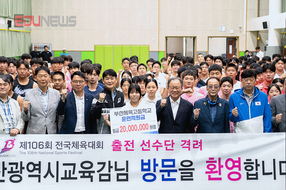 [에듀뉴스] 김석준 부산광역시교육감은 25년 만에 부산에서 개최되는 제106회 전국체육대회를 앞두고 10일 오후, 영도구 소재 부산체육고등학교를 방문해 출전 선수단과 교직원을 격려하고 격려금 2천만원을 전달했다.
