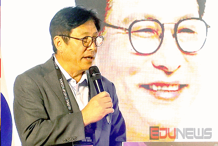 [에듀뉴스] 도성훈 인천광역시교육감이 12일 글로벌스타트업학교에서 열린 ‘2025 글로벌 스타트업 에듀 써밋’에 참석해서도 ‘읽걷쓰’를 알렸다.