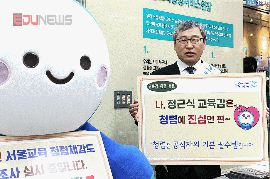 [에듀뉴스] 정근식 서울특별시교육감이 3일 오전 서울교육청에서 ‘청렴은 나를 비추는 거울입니다’라는 슬로건 아래 교육감이 직접 찾아가는 청렴 캠페인을 진행하고 있다.
