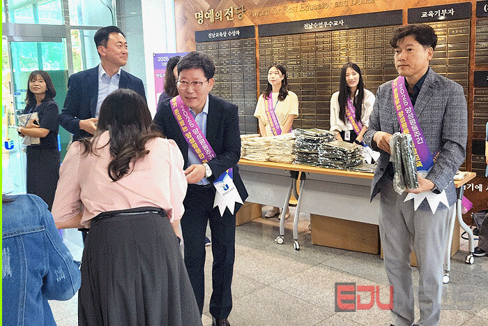 김대중 교육감은 9월 5일 청사 로비에서 열린 ‘양성평등 퀴즈풀이’에 참여하고 ‘일하는 여성’ 전시를 관람했으며 김 교육감은 “양성평등은 교육이 지향해야 할 기본 가치”라며 “학교가 차별 없는 배움터로 자리 잡을 수 있도록 적극 지원하겠다”고 밝혔다.