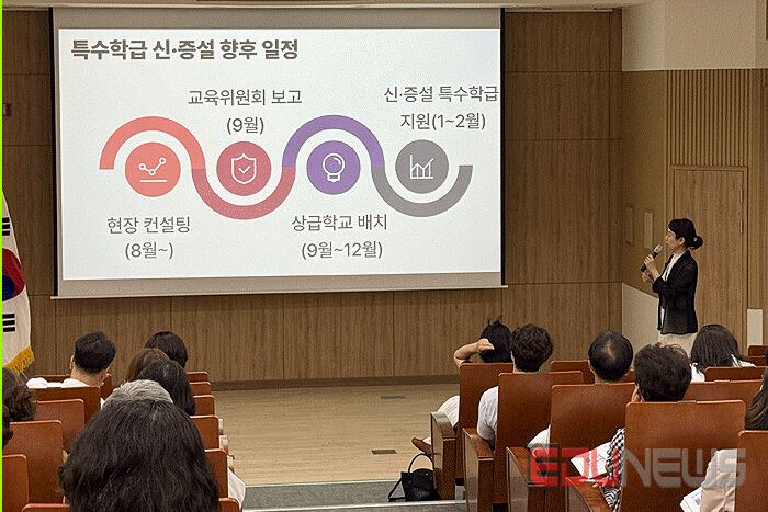 설명회는 △특수학급 설치의 필요성 △특수학급 설치 업무의 흐름 △지원 예산 △환경 구성 사례를 비롯한 질의응답 등으로 진행됐다.