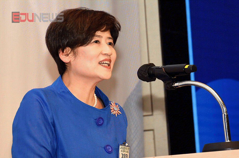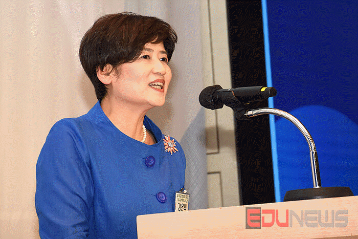 [에듀뉴스] 8일부터 9일까지, 앰배서더 서울 풀만 호텔에서 열리는 ‘2025년 전국교육장협의회(회장 한미라) 하계 정기총회 및 워크숍’에서 한미라 회장이 “학생(성장)을 위한 모두의 협력과 노력이 학생맞춤통합지원 입니다”라면서 “교육장님들 파이팅”을 외치고 있다.
