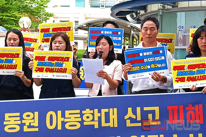 이어 “2024년 10월 31일, 전교조 강원지부 조합원들은 한 학교를 찾았다”며 “신경호 교육감의 일방적인 단체협약 실효 선언에 항의하고 면담을 요구하기 위해서였다”고 밝히고 “이는 조합원이 현장을 찾아 교육감에게 직접 대화를 요청한, 정당한 노동조합 활동이었으며 면담을 요청하는 과정에서 교육감과 조합원이 뒤엉켜 넘어지며 서로 다치는 일이 발생했고 이에 자유대한호국단은 조합원들을 건조물침입 및 공무집행방해 혐의로 고발했다”고 설명했다.