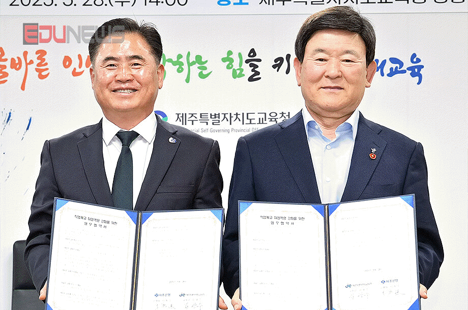 [에듀뉴스] 제주특별자치도교육청(교육감 김광수)은 28일 제주은행(은행장 이희수)과 직업계고 학생들의 취업역량 강화를 위한 업무협약(MOU)을 체결했다.