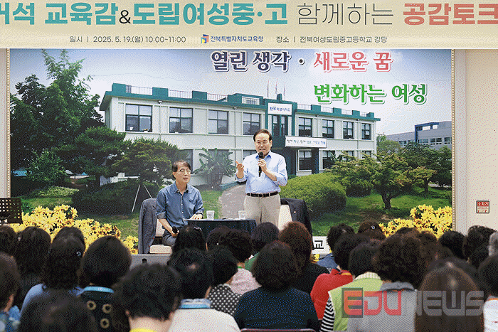 도교육청에 따르면 서 교육감은 이날 전북도립여성중고등학교를 방문해 150여명의 학생들이 참석한 가운데 열린 ‘교육감과 함께하는 공감토크’에서 “배움을 향한 열정으로 가득한 여러분이 존경스럽다”며 이같이 밝혔다.