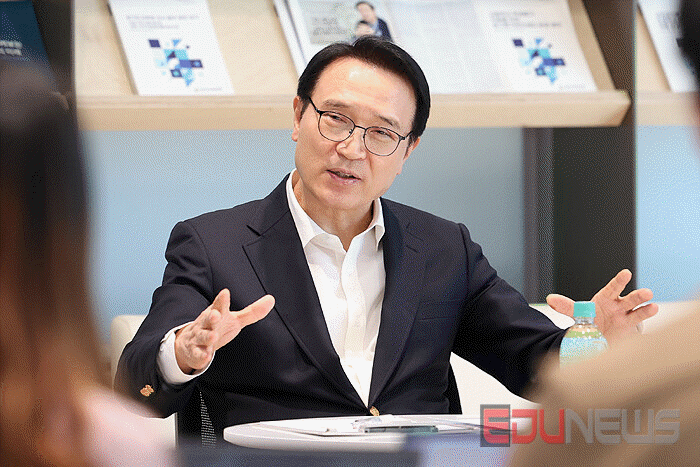 [에듀뉴스] 정근식 서울특별시교육감이 7일 오전 창의융합형 과학 인재 양성을 목표로 과학중점학교로 운영 중인 서울 종로구 경복고등학교를 방문해 ‘과학중점학교 운영 현황 및 내실화 방안’을 주제로 간담회를 하고 있다.