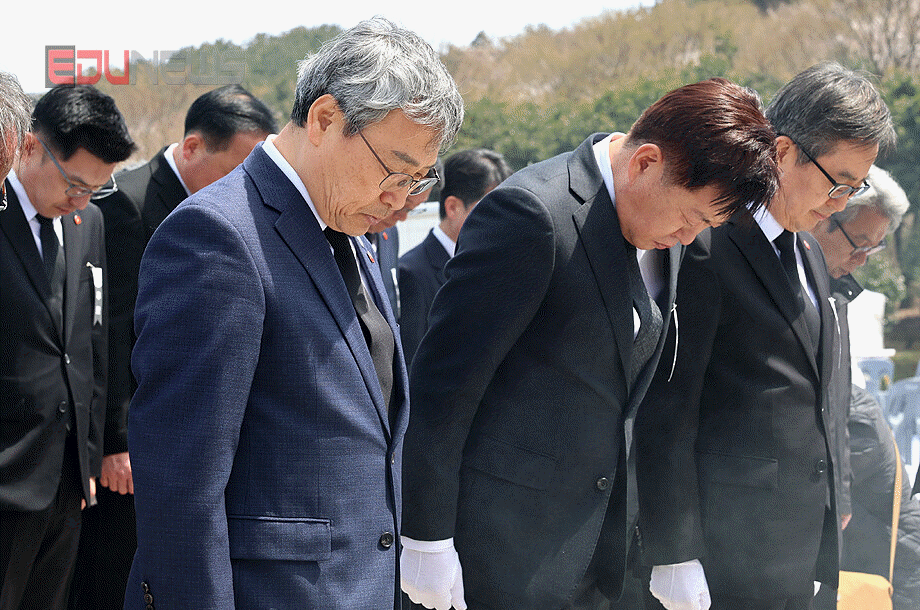 [에듀뉴스] 정근식 서울특별시교육감이 3일 오전 제주특별자치도 4·3평화공원을 찾아 4·3 희생자들을 추모하며 헌화 분향하고 있으며 위패봉안실을 둘러본 후 방명록에 “서울의 청소년들이 4·3 영령들을 기억하며 민주시민이자 세계시민으로 성장하기를 기원한다”고 적었다.