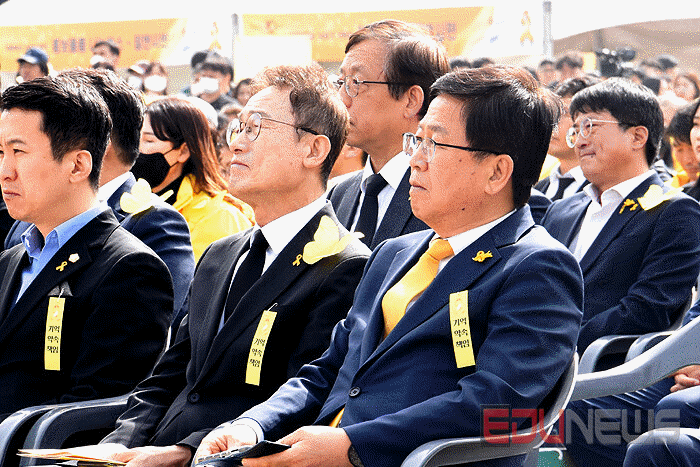 아울러 “교육은 바다 위에 떠 있는 배와 같다는 말을 많이 한다”고 예를 들고 “바다는 잔잔하다가도 큰 파도가 치고 바람이 불고 배를 이리 저리 흔들지만 배는 도착해야 할 항구의 방향을 잊지 않고 잘 도착해야 한다”며 “우리 교육감님들 역시 배 위에 선장으로 몰아치는 파도에도, 내리치는 비바람에도 속도와 방향을 조절하며 우리 학생들의 희망찬 미래를 위해 노력하고 계신다”고 전했다.