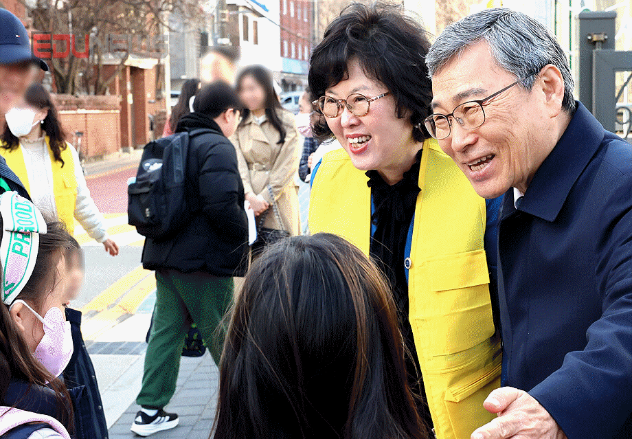 [에듀뉴스] 정근식 서울특별시교육감이 26일 오전 서울 강동구 명일동에서 발생한 대형 땅 꺼짐 사고 현장 인근의 서울대명초등학교를 방문해 아침 등교 지도를 하고 있다.