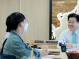 오영훈 지사는 난생처음 집무실을 찾은 김나연(인화초·6학년) 학생을 비롯한 총 10명의 어린이 기자단에게 ‘민선8기 최연소 방문자들’이라고 환영하며 악수를 청했다.