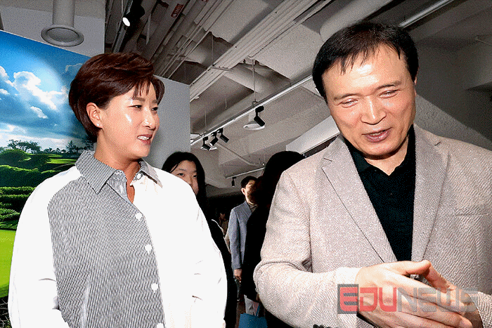 위 사진은 지난 6월 14일 오후 경기도 용인에 있는 복합문화공간인 ‘세리박 위드 용인’을 방문해 골프 여제 박세리 대표와 시설을 살펴보는 모습이다(관련기사).
