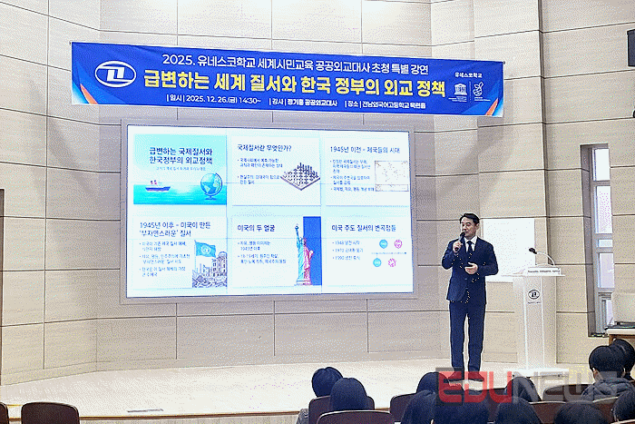 [에듀뉴스] 전남교육 꿈실현재단(이사장 김대중)은 26일 전남외국어고등학교에서 정기홍 외교부 공공외교대사를 초청해 ‘급변하는 국제질서와 한국 정부의 외교정책’을 주제로 특별 강연을 열었다. 전남교육청에 따르면 이번 특강은 급변하는 세계 정세 속에서 대한민국 외교의 역할과 중요성을 학생들이 보다 쉽게 이해할 수 있도록 돕기 위한 전남학생공공외교스쿨 프로그램의 일환으로 마련됐다. 정기홍 대사는 ▲1945년 이후 형성된 국제질서와 변화 과정 ▲미·중 전략경쟁 등 강대국 간 갈등 심화 ▲북러 동맹과 우크라이나 전쟁 등 국제 분쟁의 파급 효과 ▲대한민국 외교정책의 방향과 대응 전략 등을 학생들의 눈높이에 맞춰 설명했다. 또한 한국의 외교력과 소프트파워가 결합된 ‘K-이니셔티브’ 공공외교 정책을 통해 세계와 소통하고 국가 브랜드 가치를 높이는 다양한 사례도 소개했다. 정 대사는 “복잡하고 예측하기 어려운 국제 환경 속에서 국제사회를 올바르게 이해하는 안목을 갖는 것이 중요하다”며 “오늘의 강연이 학생들이 세계를 향한 시야를 넓히는 계기가 되길 바란다”고 전했다. 이날 강연 후 진행된 질의응답 시간에는 학생들의 다양한 질문이 이어졌다. 학생들은 외교정책이 국민의 지지를 받지 못할 때 나타날 수 있는 어려움, 우리나라의 아프리카 외교 전략, 한류의 지속가능성과 소프트 파워의 미래, 이스라엘·팔레스타인 갈등 문제 등 국제 이슈 전반에 대해 적극적으로 질문하며 높은 관심을 보였다. 강연을 들은 학생들은 “급변하는 국제정세를 이해하는 데 큰 도움이 됐다”, “외교의 중요성을 실감했고 앞으로 국제문제에도 지속적인 관심을 갖고 싶다” 등등의 소감을 밝혔다. 김대중 전남교육 꿈실현재단 이사장은 “이번 특강은 학생들이 외교와 국제협력 현장을 보다 깊이 이해하는 뜻깊은 시간이었다”면서 “앞으로도 우리 학생들이 세계시민으로 성장할 수 있도록 공공외교 교육 프로그램을 지속적으로 확대해 나가겠다”고 말했다. 전남교육 꿈실현재단은 학생들이 국제정세를 주체적으로 이해하고, 지역을 넘어 세계와 소통하는 글로컬 인재로 성장할 수 있도록 특강과 다양한 교육활동을 지속적으로 추진할 계획이다. ⓒ 에듀뉴스 (https://www.edunewson.com/) 무단전재 및 재배포 금지