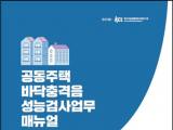 이번에 배포된 매뉴얼은 「주택법」 및 하위 규정, 현황분석 결과 등을 토대로 공동주택 바닥충격음 사후성능검사의 기준ㆍ방법ㆍ절차 등을 성능검사기관, 공인시험기관, 사용검사권자, 사업주체 중심의 표준업무로 제안한 것이다.
