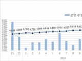 HUG가 발표한 월별 분양가격은 공표 직전 12개월 동안 분양보증서가 발급된 민간 분양사업장 평균 분양가격을 의미한다.