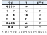 평가 위탁기관인 국토안전관리원에서 ▲안전전담 조직 구성 ▲관련 법령에 따른 업무 수행 ▲자발적 안전점검 활동 ▲건설안전시스템 운영(지원실적) 여부 등의 지표와 사망자 발생수를 평가해 5개 등급으로 산정했다. 올해는 257개 현장의 318개 참여자를 대상으로 안전관리 수준평가를 실시했다.