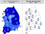 비수도권에서는 광주만 1.3p(88.2→89.5) 상승했다. ▲충남 28.6p(100→71.4) ▲제주 25p(100→75) ▲충북 22.2p(88.9→66.7) ▲경남 21.4p(100→78.6) ▲부산 17.4p(94.7→77.3) ▲전북 16.7p(91.7→75) ▲경북 16.7p(100→83.3) ▲울산 14.7p(93.3→78.6) ▲대전 10.5p(100→89.5) ▲강원 10p(90→80) ▲대구 8.5p(104.5→96) ▲세종 6.3p(106.3→100) ▲ 전남 1.3p(84.6→83.3) 순으로 하락했다.