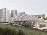 당선작은 운동시설을 넘어 대지 전체의 지형에 대한 오마주라는 개념으로 자칫 거대해질 수 있는 건축물을 경사지붕으로 감싸 부담감을 줄였고, 굴토를 최소화해 주변 공원들과의 경사 차이를 건축물로 연계했다.