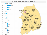 지방(-0.02%)은 시ㆍ도별로 부산(-0.03%), 대전(-0.02%), 대구(-0.11%), 충남(-0.03%), 충북(0.03%), 강원(0.07%), 광주(-0.05%), 울산(0%), 세종(-0.05%), 전남(0.01%), 전북(0.04%), 경남(-0.03%), 경북(-0.03%), 제주(-0.06%) 등의 결과를 보였다.