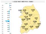 지방(-0.03%)은 시ㆍ도별로 부산(-0.06%), 대전(-0.04%), 대구(-0.04%), 충남(-0.03%), 충북(-0.02%), 강원(-0.02%), 광주(-0.03%), 울산(-0.01%), 세종(-0.14%), 전남(-0.02%), 전북(-0.03%), 경남(-0.05%), 경북(0.01%), 제주(-0.06%) 등의 결과를 보였다.