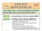 특히, 안전위해시설물 등 시급을 요하는 공용시설물의 보수, 경비원 등 단지 내 근로자 근무환경 개선, 어르신, 장애인 등 소외계층 대상 사업을 우선적으로 지원할 계획이다.