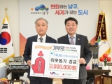 HUG에서 기탁한 성금은 부산사회복지공동모금회를 통해 부산 남구 지역 저소득층 복지사업에 사용될 예정으로, 기부금 전달식은 오은택 부산 남구청장과 윤명규 HUG 자산관리본부장 등이 참석한 가운데 부산 남구청장실에서 진행됐다.