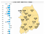 지방(-0.04%)은 시ㆍ도별로 부산(-0.07%), 대전(0.01%), 대구(-0.1%), 충남(0%), 충북(0%), 강원(-0.01%), 광주(-0.03%), 울산(-0.01%), 세종(-0.09%), 전남(-0.03%), 전북(-0.01%), 경남(-0.05%), 경북(-0.02%), 제주(-0.05%) 등의 결과를 보였다.