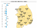 지방(-0.04%)은 시ㆍ도별로 부산(-0.05%), 대전(-0.04%), 대구(-0.12%), 충남(-0.03%), 충북(0%), 강원(-0.02%), 광주(-0.09%), 울산(0.02%), 세종(0.04%), 전남(-0.05%), 전북(0%), 경남(-0.01%), 경북(-0.07%), 제주(-0.03%) 등의 결과를 보였다.