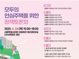 서울주택도시공사(SH)는 서울특별시의회, 한국도시계획가협회와 함께 이달 24일 서울시의회 제2대회의실에서 `모두의 안심주택을 위한 정책 토론회`를 공동 개최한다고 밝혔다.