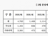 이는 전월(1409가구) 대비 3353가구(238%) 증가한 수치다. 전년 동월(1114가구) 대비로는 3648가구(327%) 늘었다.