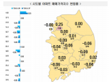 지방(-0.04%)은 시ㆍ도별로 부산(-0.04%), 대전(-0.06%), 대구(-0.09%), 충남(-0.04%), 충북(0.01%), 강원(0%), 광주(-0.06%), 울산(0.02%), 세종(-0.09%), 전남(-0.03%), 전북(0.03%), 경남(-0.03%), 경북(-0.06%), 제주(-0.05%) 등의 결과를 보였다.