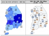 5대 광역시에서는 대구 9.4p(83.3→73.9), 부산 8.4p(75→66.6), 광주 1.7p(64.2→62.5) 떨어졌으나 울산(75→76.4)과 대전(72.7→73.3)은 각각 1.4p, 0.6p 올랐다.