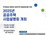 LH는 오는 14일 오후 2시 LH 경기남부지역본부 3층 대회의실에서 `2025년 공공주택 사업설명회`를 열고, LH 공공주택 사업 추진 방향부터 설계공모 추진계획 등을 상세히 소개한다. 설계 전문가를 활용하는 제3자 검증 방식 도입, 각 전문 분야별 설계검증위원회 마련 등 올해부터 강화되는 설계검증제도 개선 사항도 함께 설명할 예정이다.