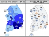 5대 광역시는 울산만 33.4p(66.6→100) 올랐고, 광주 21.2p(75→53.8), 대구 12.8p(80.9→68.1), 부산 8.8p(88.8→80), 대전 8.4p(100→91.6) 순으로 내렸다. 세종(91.6→90.9)은 0.7p 하락했다.