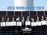 문 대통령은 <새만금 재생에너지 비전 선포식>에서 "새만금의 태양이 대한민국 발전의 원동력이 되고, 새만금의 바람이 미래를 여는 자원이 될 것"이라고 밝혔다.