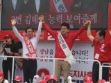 8일 오전 10시 30분 서부약국 앞에서 평일인데도 불구하고 2,000여명의 지지자들이 운집한 가운데 김태호 도지사후보와 구인모 거창군수후보가 합동유세를 벌였다.