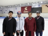 이날‘그린나래’팀은 한국체대 빙상장에서 훈련 중인 ‘쇼트트랙의 황제’ 안현수(빅토르 안) 선수와 쇼트트랙 유망주 임효준 선수에게 아웃도어를 입혀주며 함께 수상의 기쁨을 나눴다.