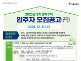 [아유경제=조명의 기자] 서울주택도시개발공사(SH)는 `원에디션강남` 등 2368가구의 행복주택 입주자(서울리츠 행복주택 포함)를 모집한다고 밝혔다. 입주자모집공고는 2025년 12월 31일 SH 누리집에 게시된 바 있다.